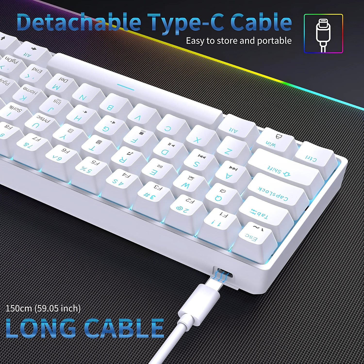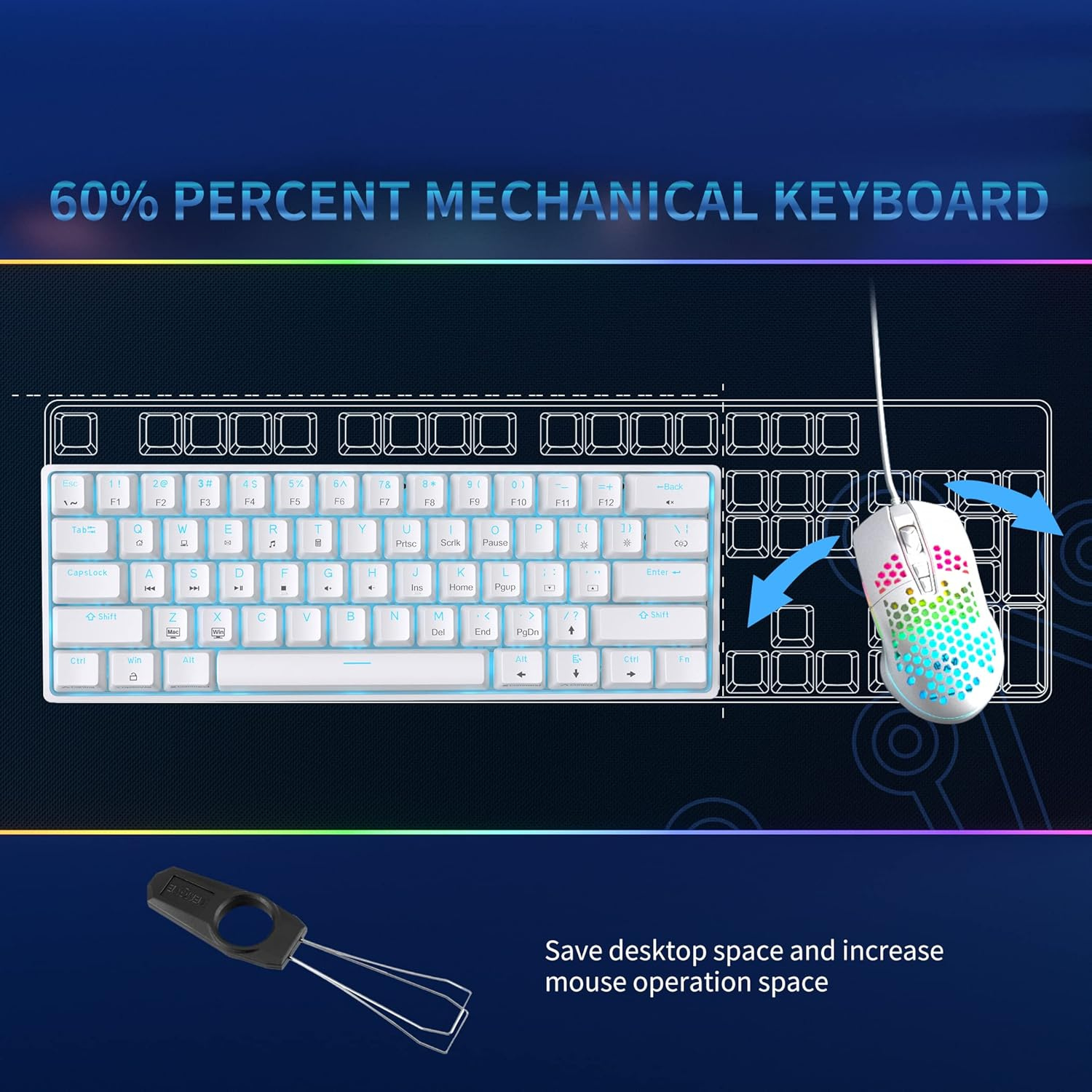 ▪️ يحتوي على 61 مفتاح فقط لتوفير مساحة أكبر للماوس وسطح المكتب