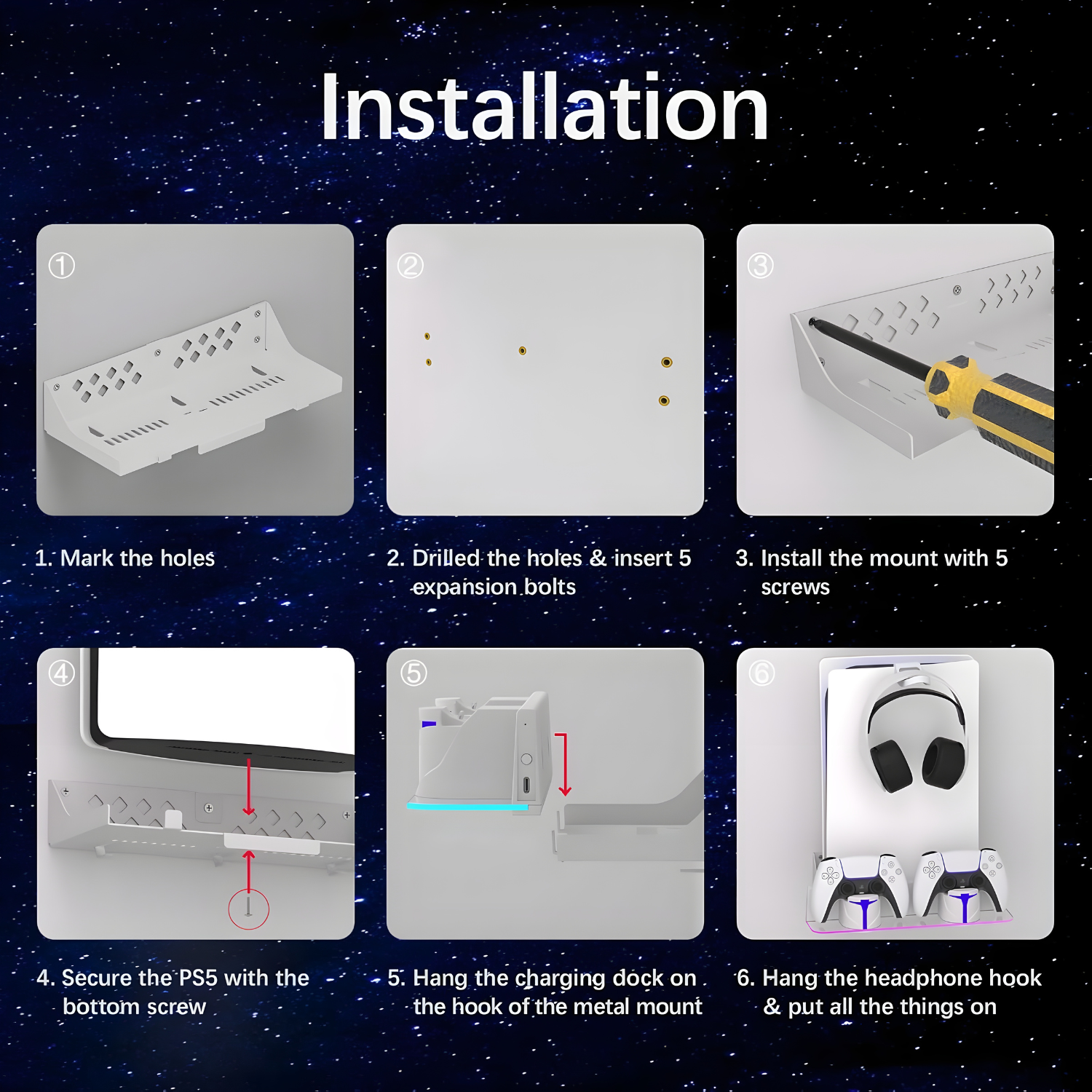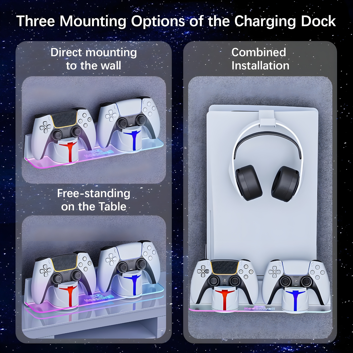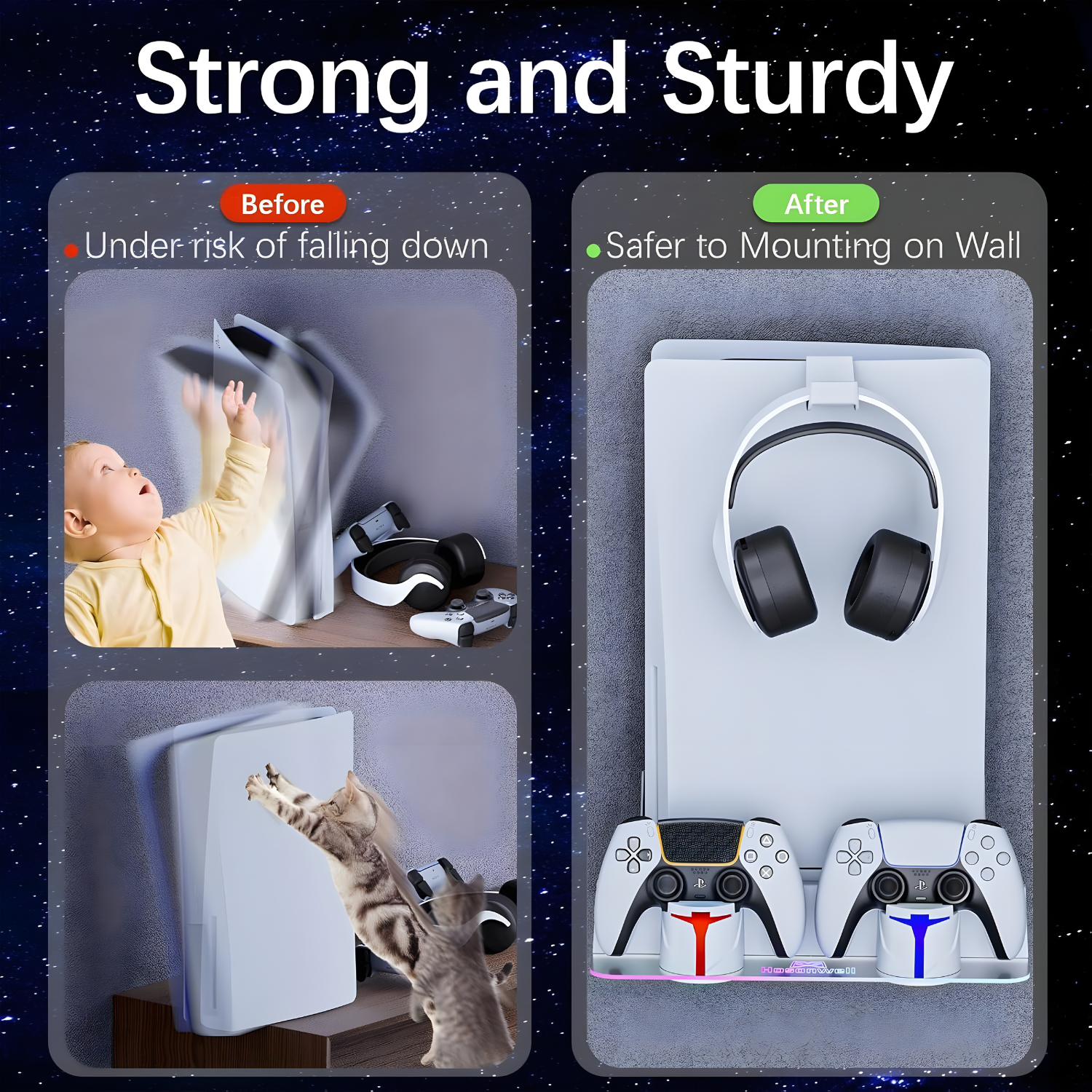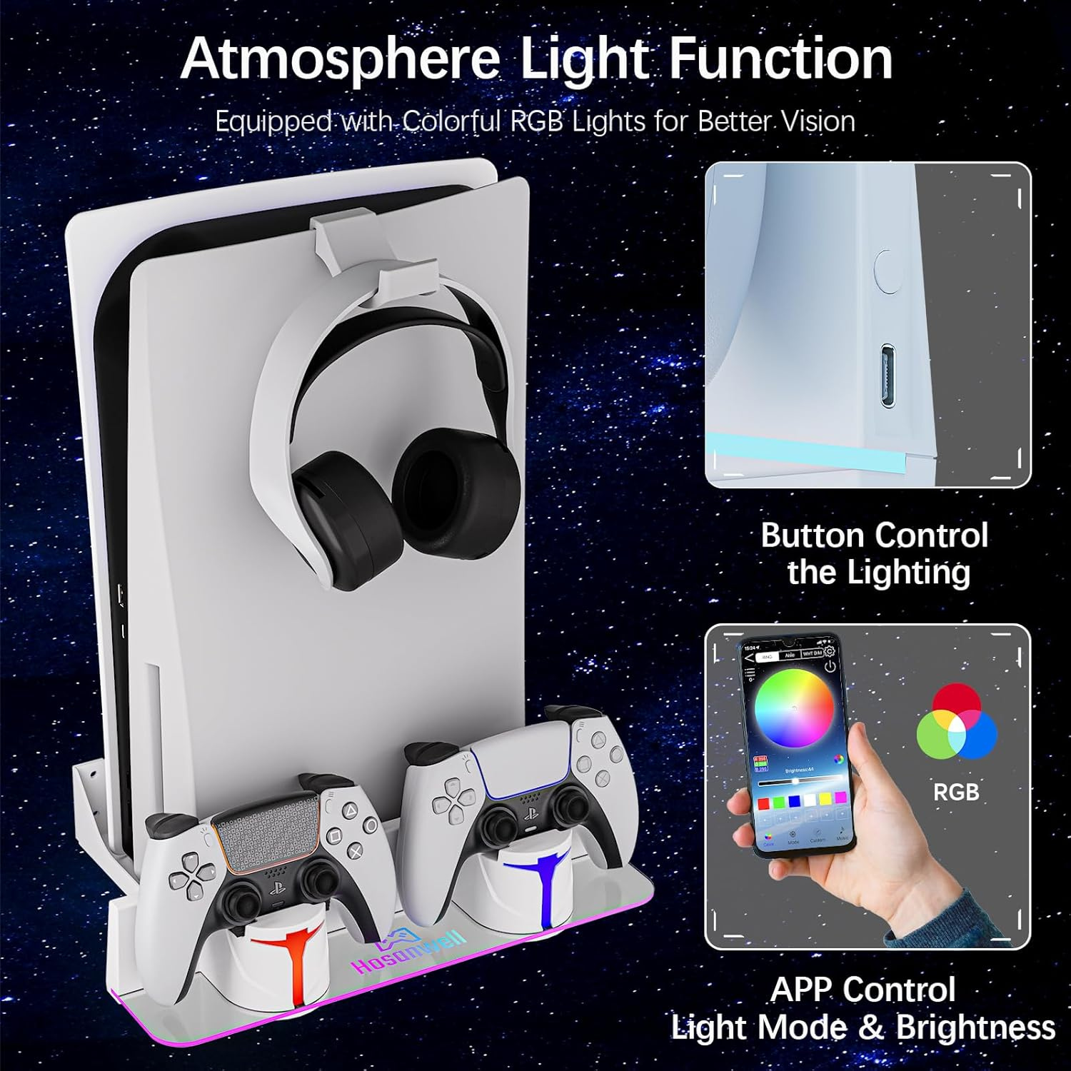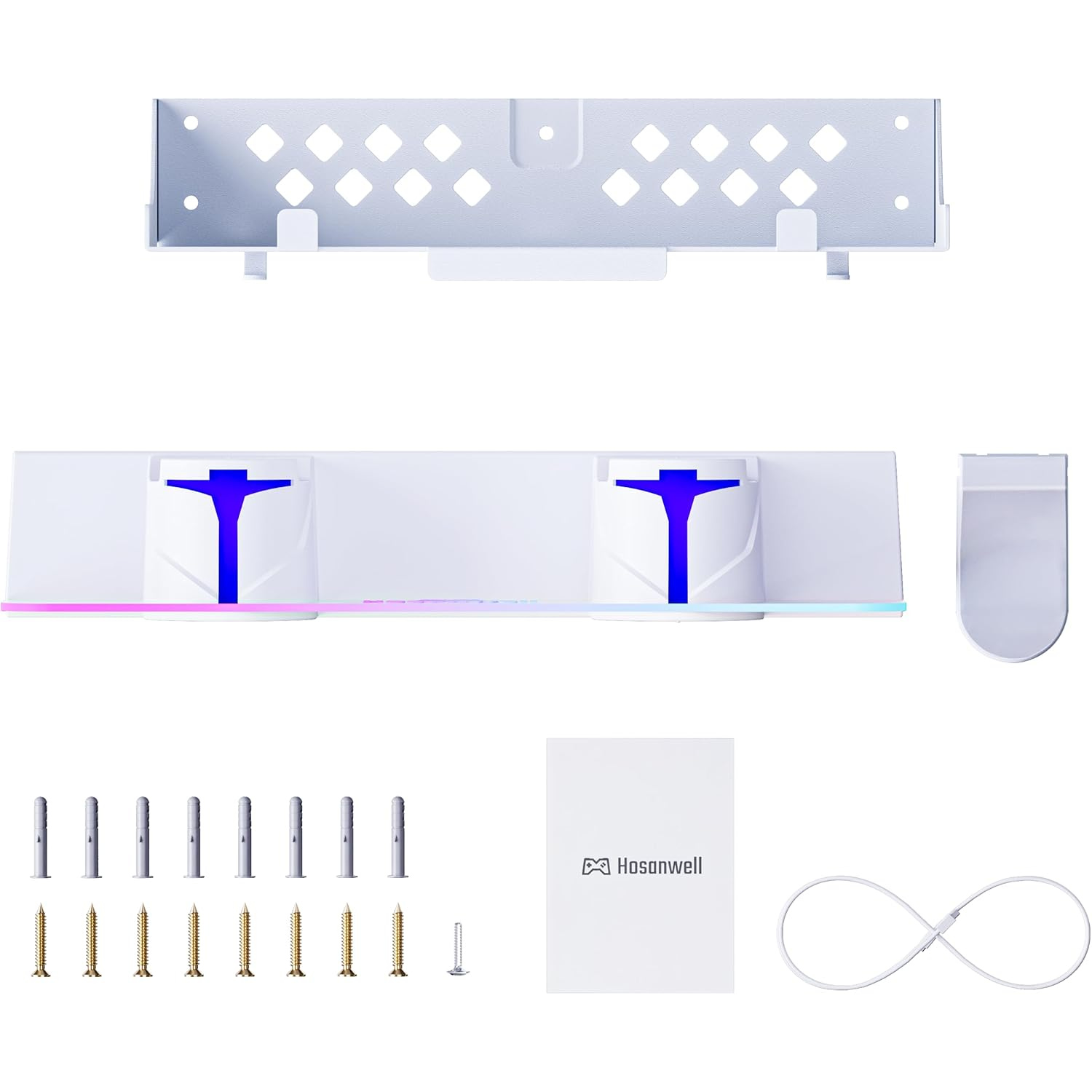 🎮 حامل حائط لجهاز PlayStation 5 من Hosanwell مع قاعدة شحن مزدوجة ومؤشرات إضاءة RGB مميزة.