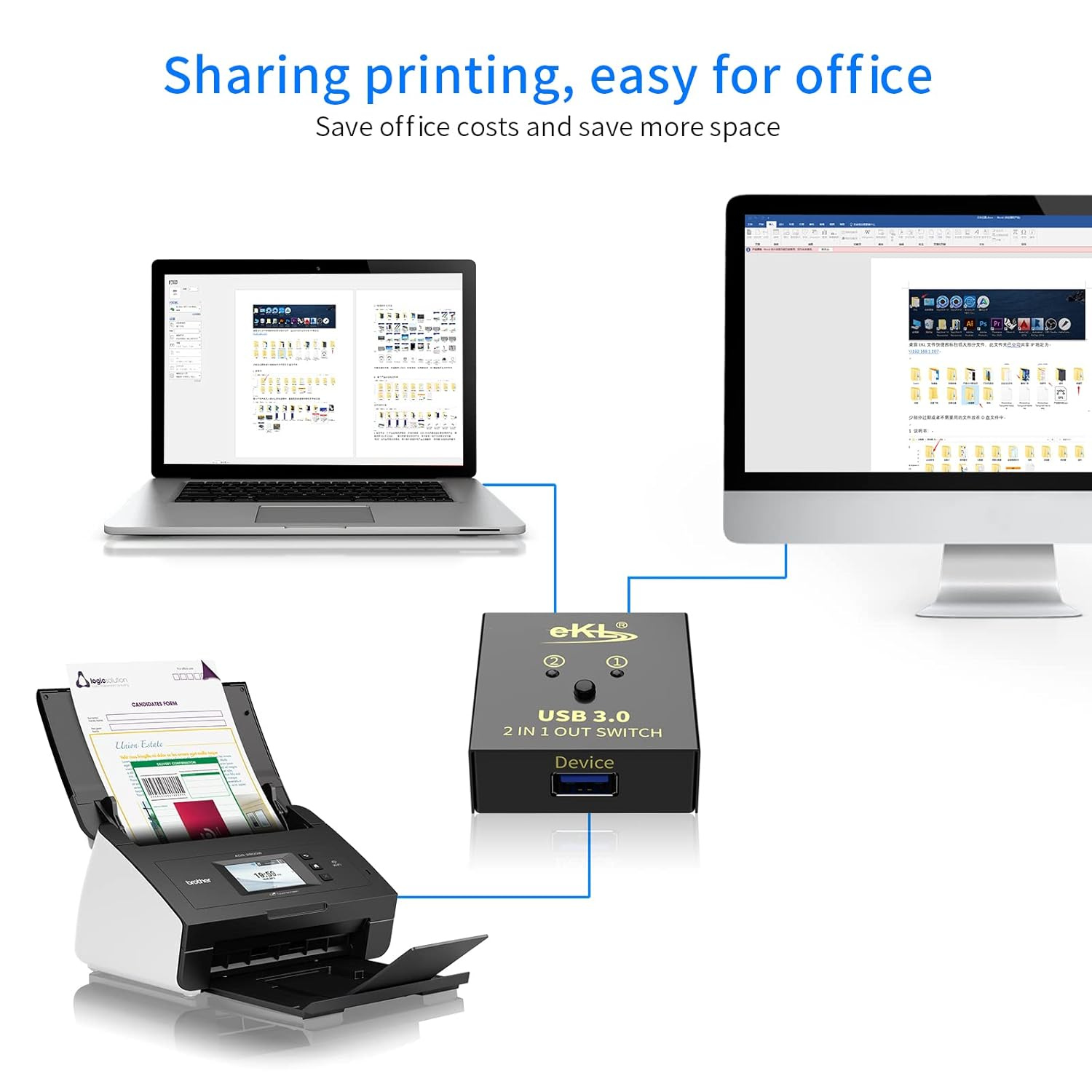 بفضل هذا المفتاح العملي، يمكنك مشاركة جهاز USB واحد مثل الطابعة أو الماسح الضوئي أو لوحة المفاتيح أو الفأرة بين جهازين كمبيوتر بسهولة، دون الحاجة لفصل وإعادة توصيل الكابلات أو استخدام برامج معقدة.