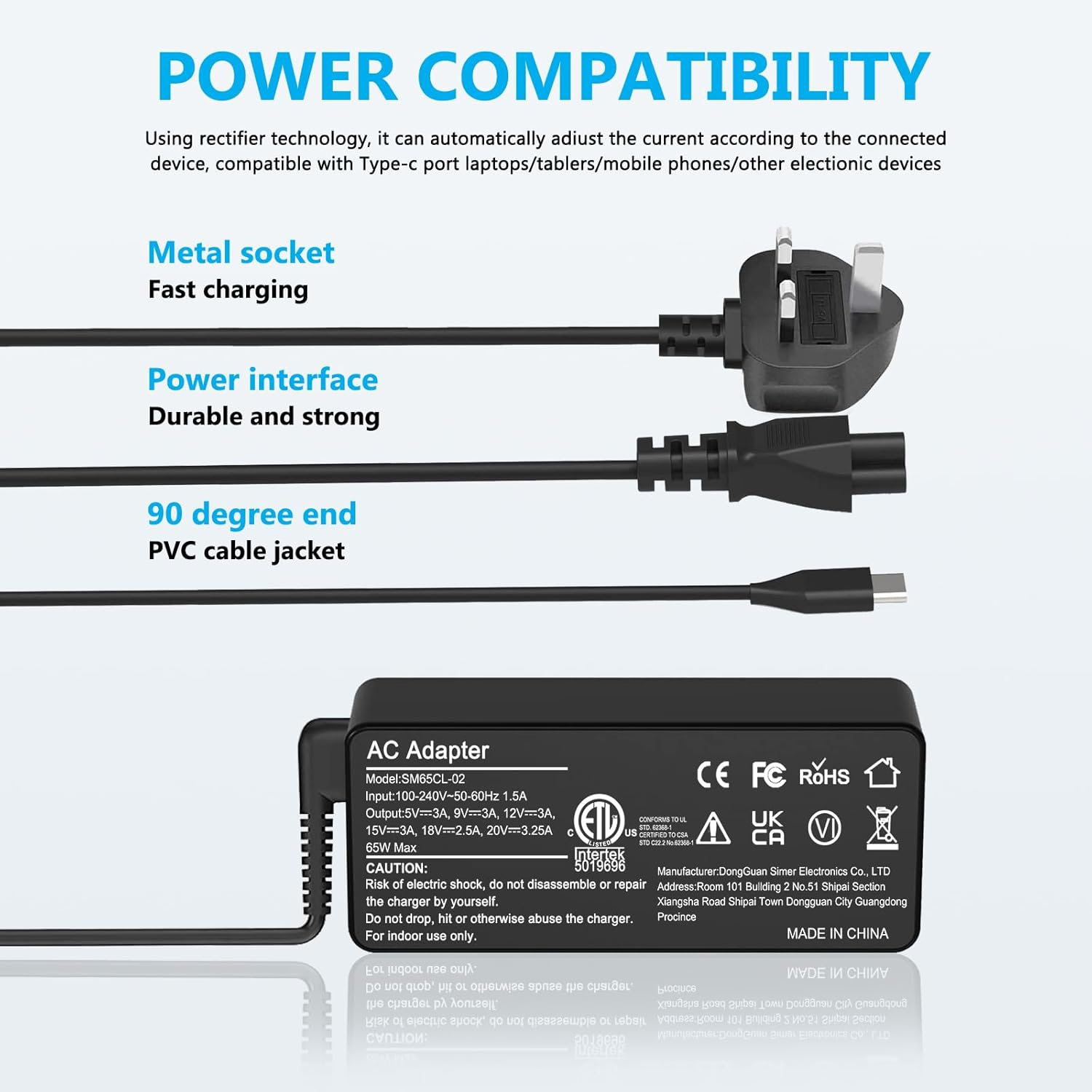شاحن LTBSTOYE USB-C بقوة 65 واط – لأجهزة Lenovo وChromebook