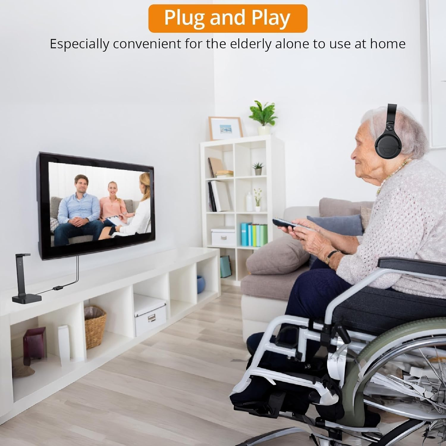 - وصل كابل USB لتغذية الجهاز بالطاقة (5V/1A) من التلفزيون أو شاحن USB.