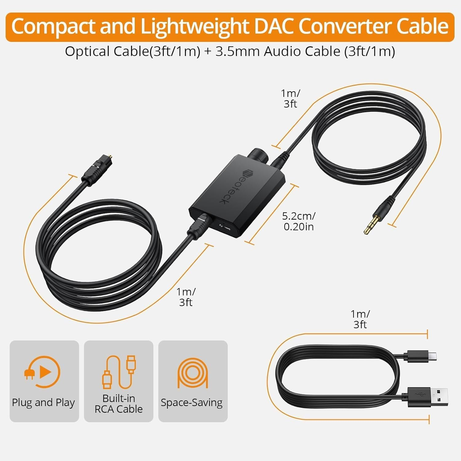 - تحويل بصري إلى 3.5 ملم: يحول SPDIF إلى صوت 3.5mm أو RCA لتوصيل مكبرات الصوت.