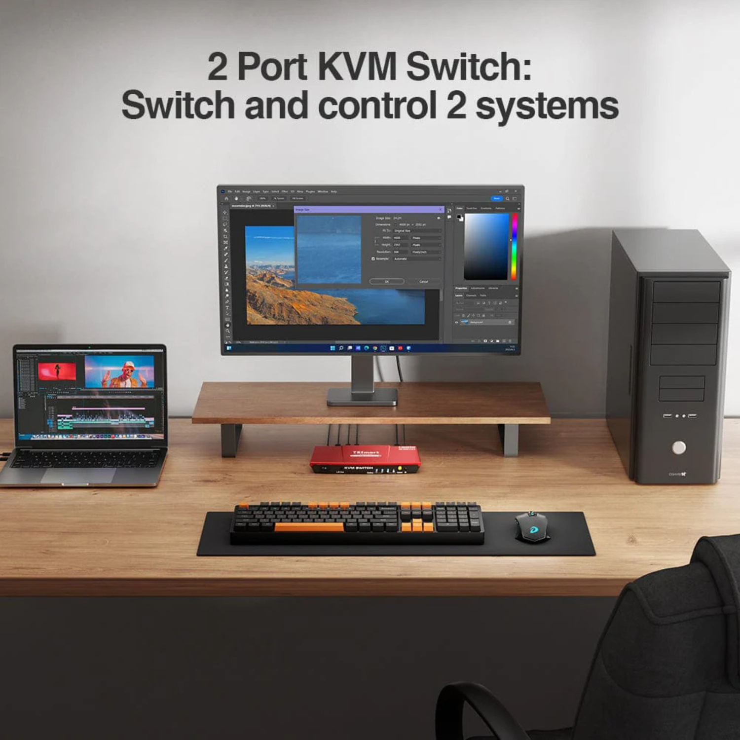تحكّم بجهازين كمبيوتر باستخدام شاشة واحدة ولوحة مفاتيح وفأرة واحدة مع محول TESmart KVM HDMI الاحترافي، المصمم لبيئات العمل، الألعاب، والبث، مع دعم 4K حقيقي وجودة صورة وصوت بدون أي تأخير.