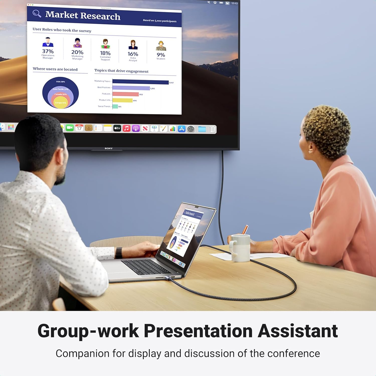 - شاشة أكبر بدون تقطيع: استمتع بعرض 4K@60Hz على التلفزيون أو الشاشة.