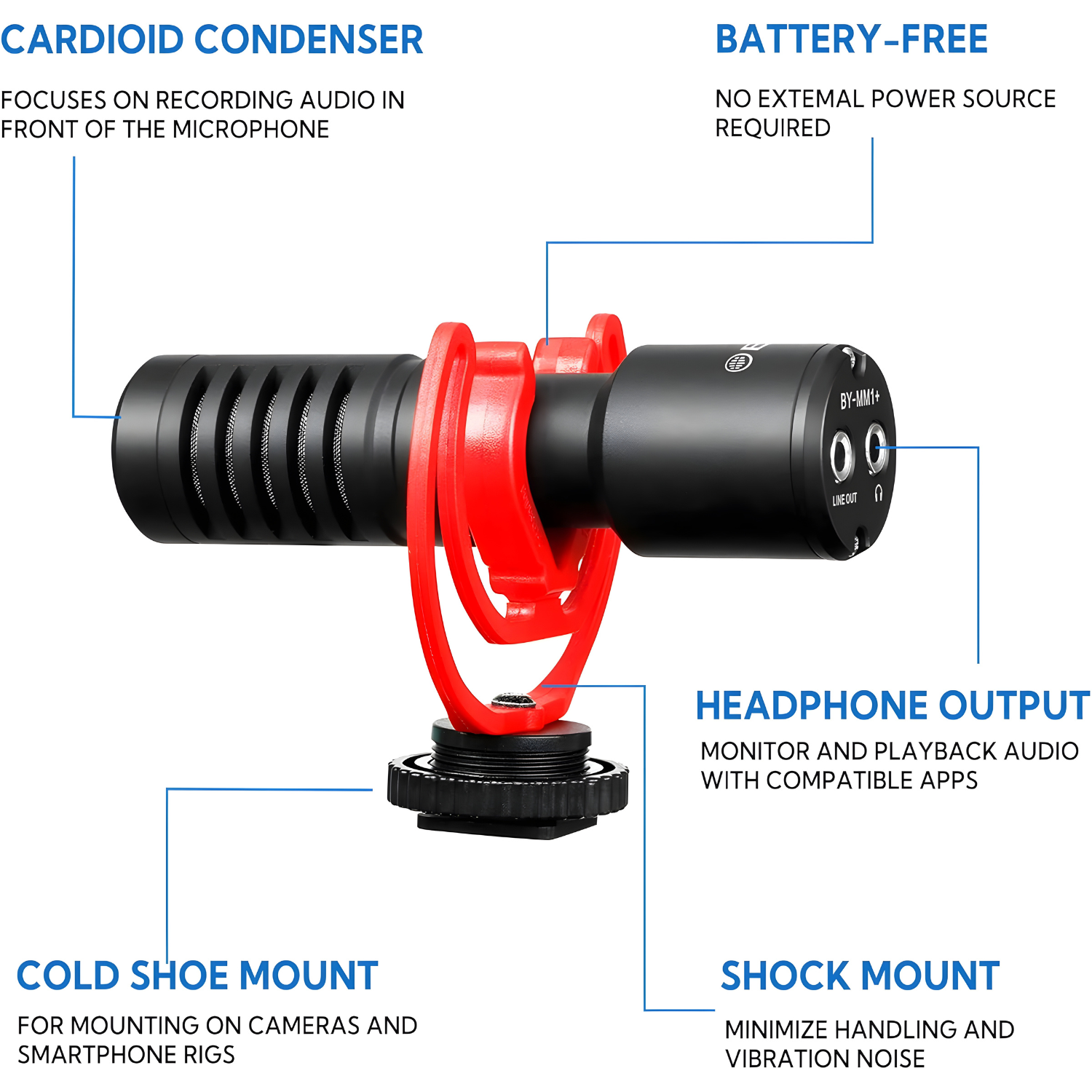 🎧 صوت احترافي نقي: ميكروفون Shotgun من نوع MM1+ يحسن جودة التسجيل بشكل ملحوظ.
