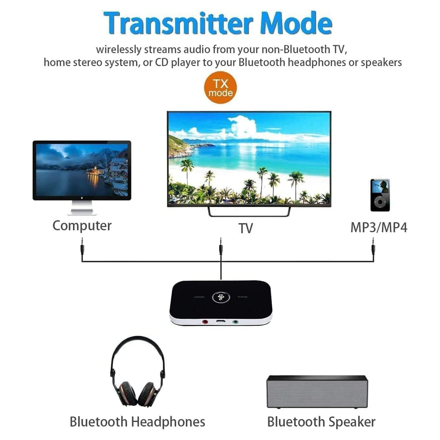 محول البلوتوث B6 يتيح لك إرسال واستقبال الصوت لاسلكيًا بجودة ستيريو عالية، مع تأخير منخفض، ودعم واسع للتلفزيون، السيارة، الكمبيوتر، والسماعات المنزلية.