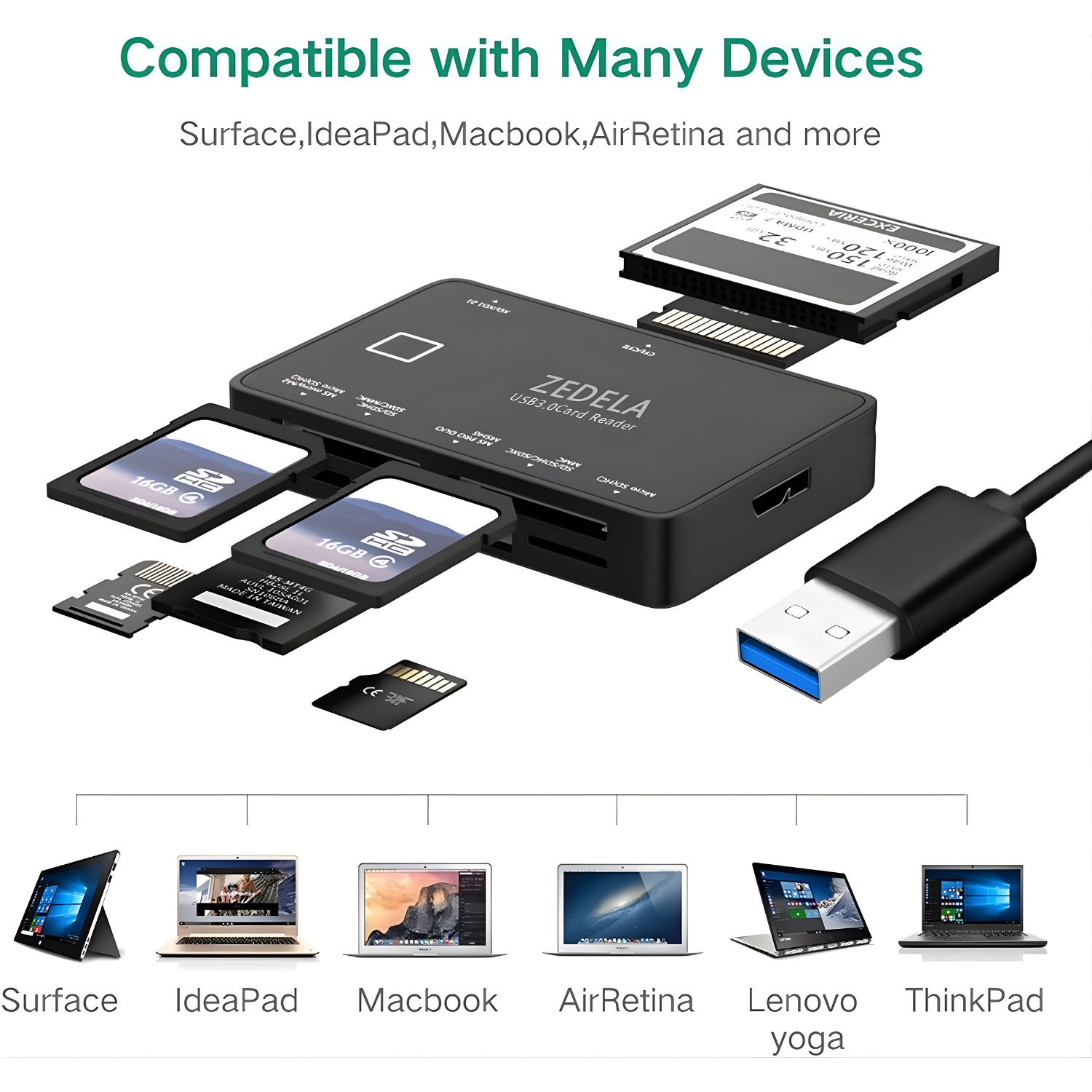قارئ بطاقات Zedela USB 3.0 متعدد 7-في-1 – سرعة 5Gbps لجميع بطاقات الذاكرة
