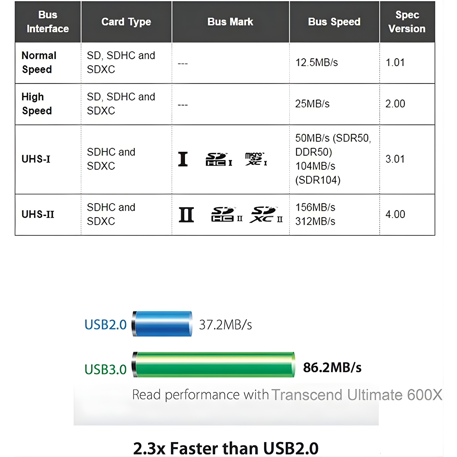 - Micro SD / Micro SDHC / Micro SDXC / TF / UHS-I